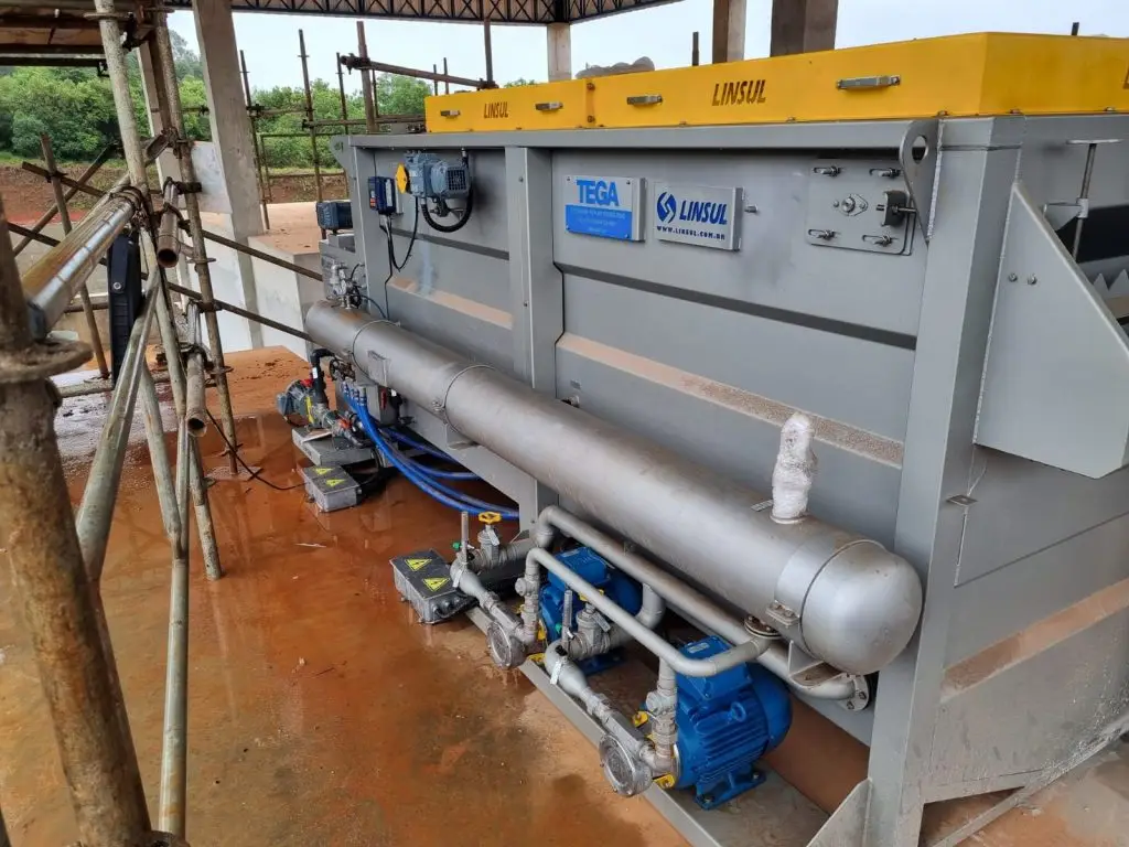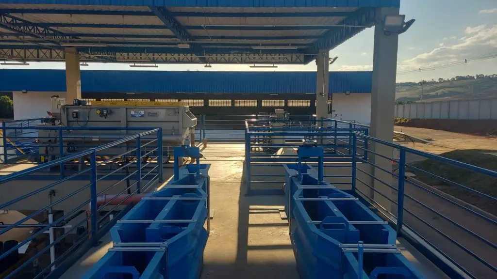 - Gestão de Lodo: desaguamento mecanizado em prensa de disco, obtendo torta com baixo umidade para disposição final.